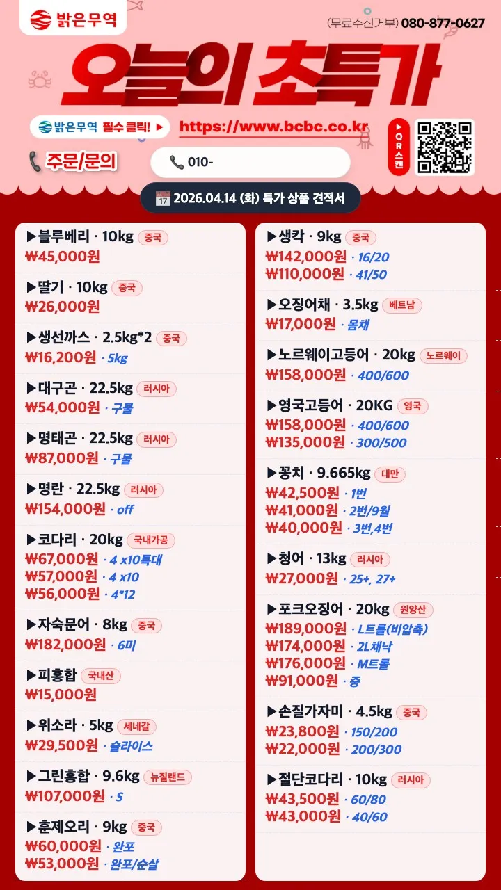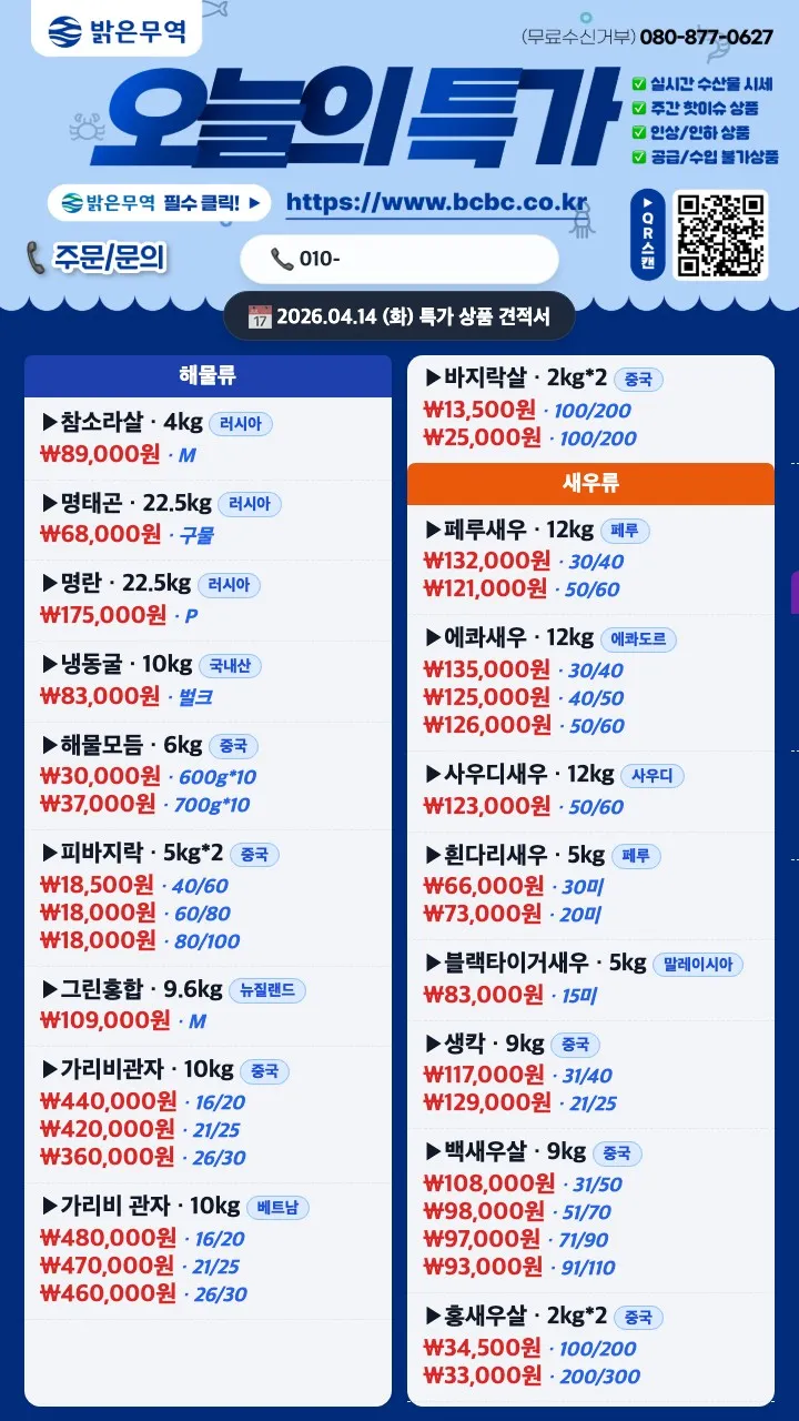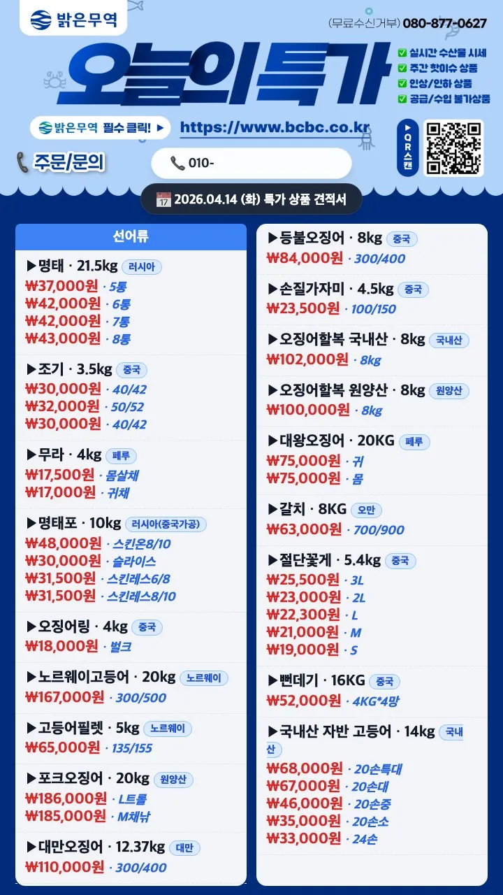 오징어튀김→ 113,000원 1kg x 8봉
