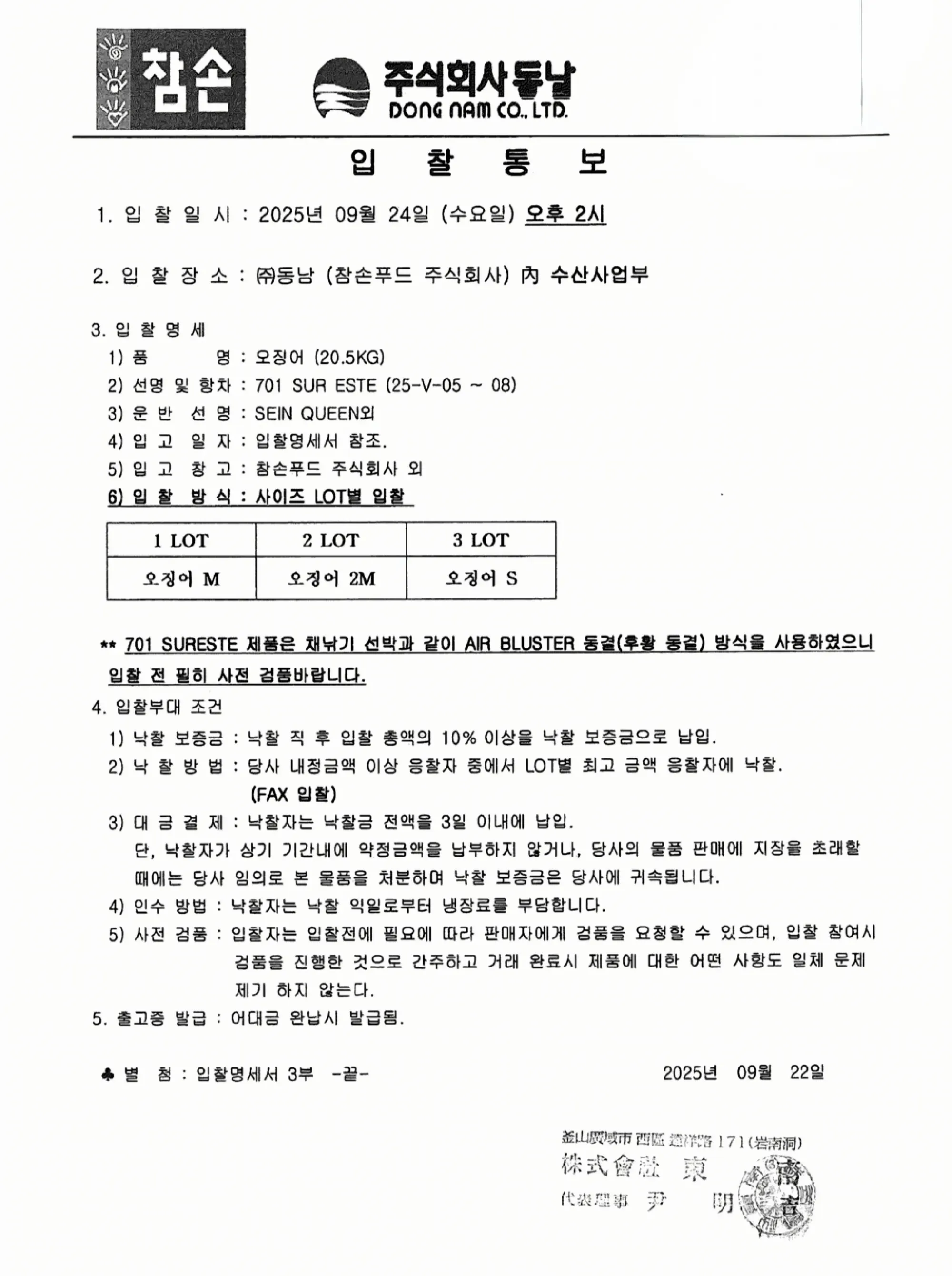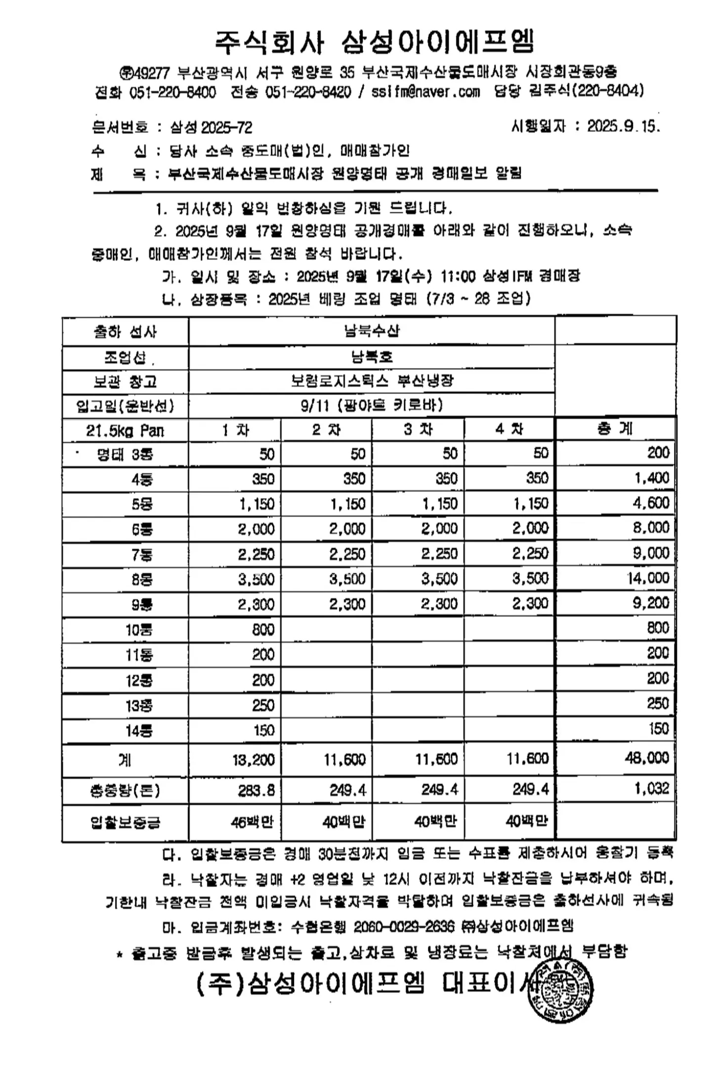 명태입찰 공고